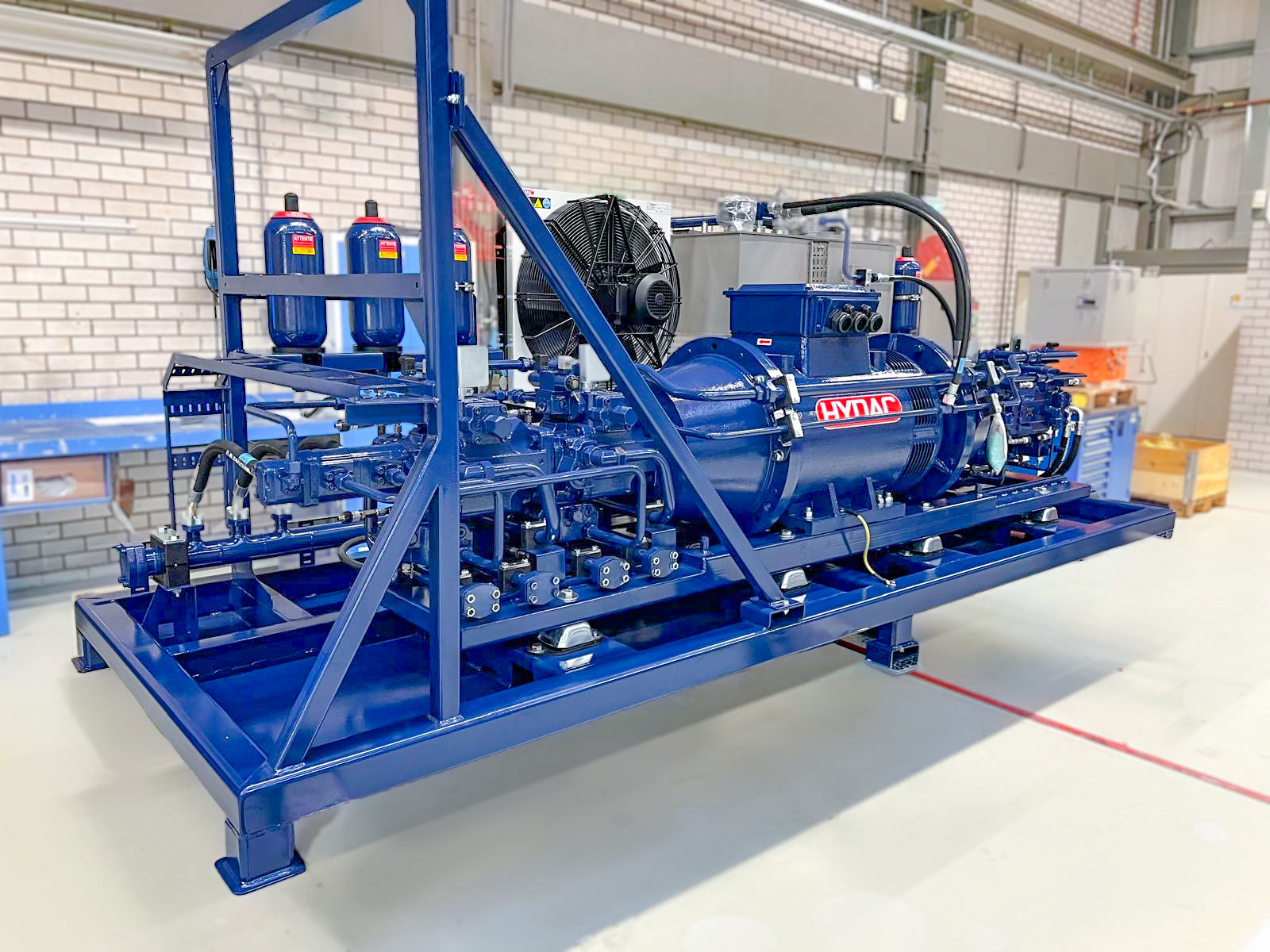 For this pilot, we supply a critical hydraulic subsystem consisting of the HPU, intensifier and pneumatic control system. This allows excess wind energy to be converted into pressure energy that can be stored efficiently and safely.